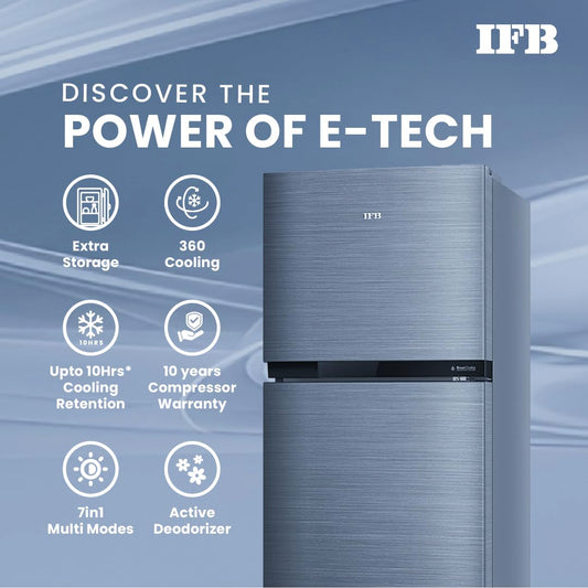 IFB 425L Frost Free Double Door Refrigerator – Brush Grey Metal Finish | Convertible Fridge-Freezer
